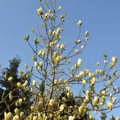 This charming dwarf, spreading bush is much more compact and upright than the typical soft, arching branches of forsythia. One of the earliest spring blooms! Masses of sunny yellow trumpets create a wash of brilliant, vivid sunshine to brighten any dreary spring day, and will certainly spread joy among early foraging insects and birds.